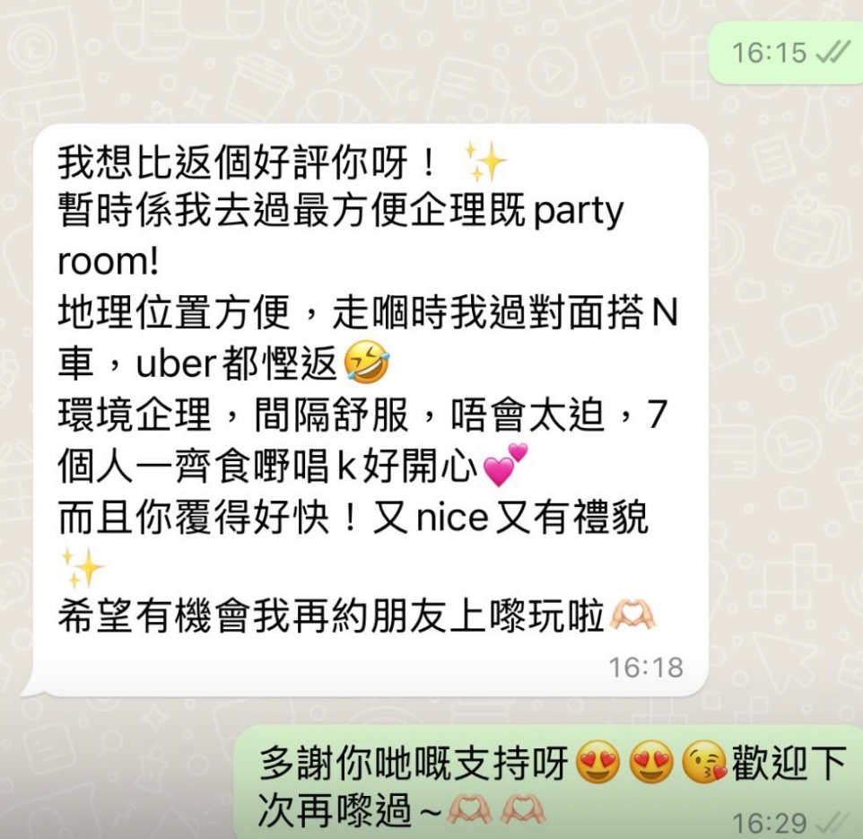 Chill Party於2019年成立,我們目前在旺角和觀塘擁有18間分店,方便各類型的慶祝活動。無論是生日派對、公司聚會還是家庭聚餐,我們的空間皆能滿足各種需求。每間分店都經過精心設計,配備高科技音響系統和影音設備,為顧客提供一流的娛樂體驗。我們的專業團隊亦隨時準備協助策劃和安排,確保每場派對都能成功且難忘。選擇我們,讓您的慶祝活動更加精彩!