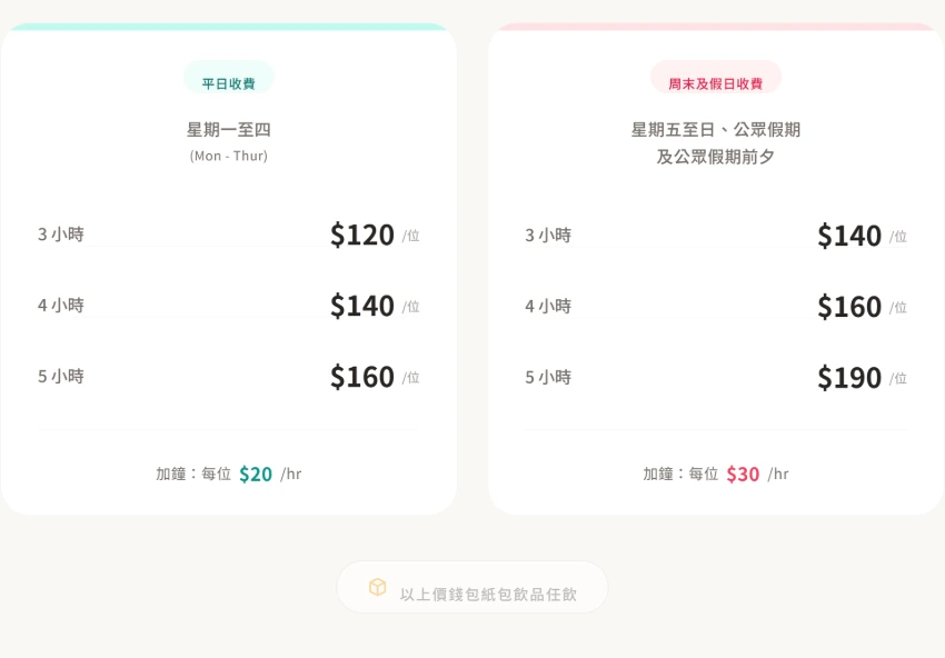 價錢表